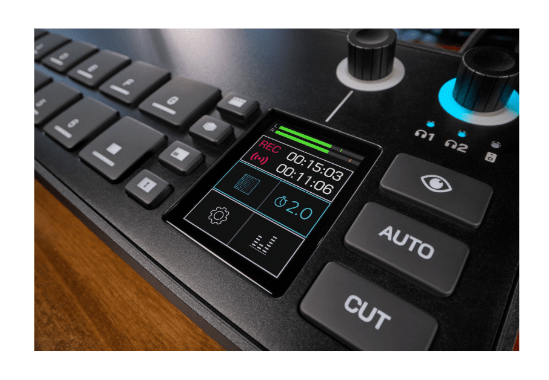 大型で高解像度のタッチスクリーンと多機能ロータリーエンコーダーを搭載し、トランジションの適用や入力プレビュー、音量レベルの調節、設定の構成など、制作のあらゆる操作を直感的かつスムーズにコントロールできます。