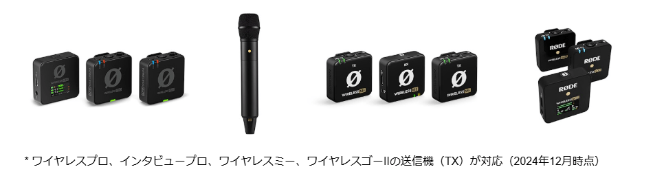 | ワイヤレスオーディオ入力数 | 2(RØDEシリーズIV 2.4GHz デジタル伝送) | ||