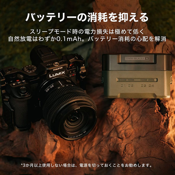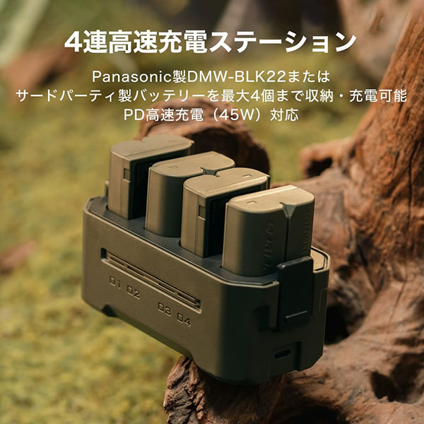 このコンパクトなDMW-BLK22用4連充電器は、Panasonic純正およびほとんどのサードパーティ製DMW-BLK22バッテリーをサポートするように設計されており、4つのスロットで簡単に充電と保管ができます。軽量設計により重量はわずか175gなので、持ち運びも簡単です。