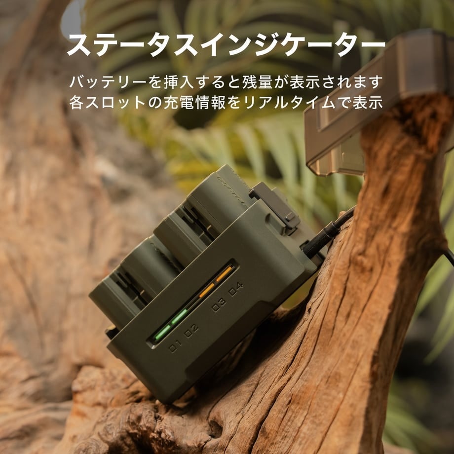 ・4つのバッテリーを同時に充電可能・USB-C高速充電 45Wの電力を供給し、4つのバッテリーを3時間で充電