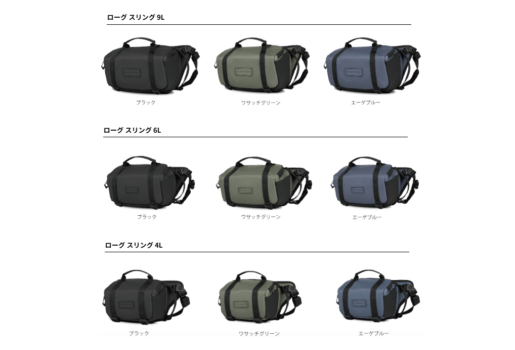 | 商品名 | ローグスリング 9L | ローグスリング 6L | ローグスリング 4L |