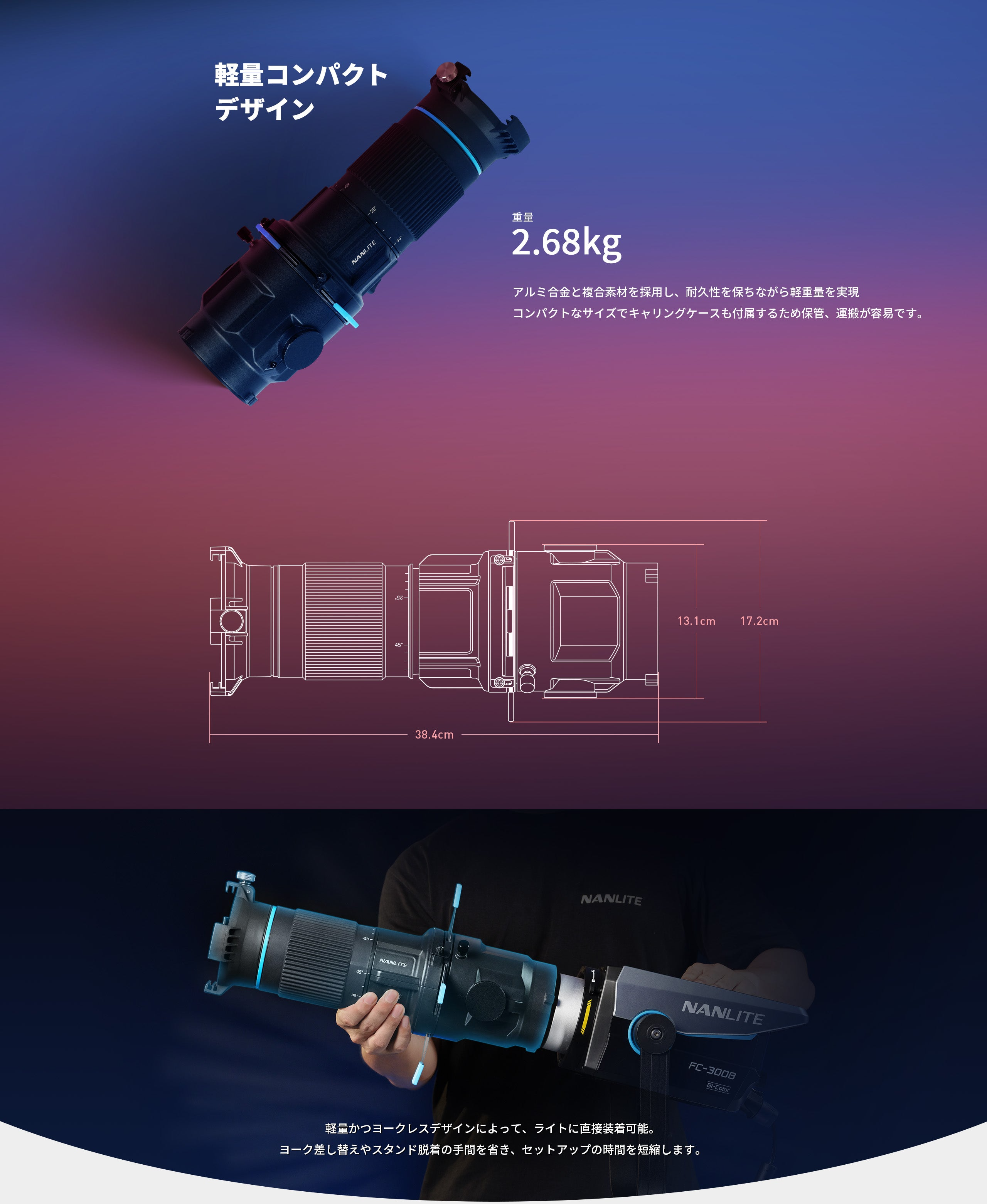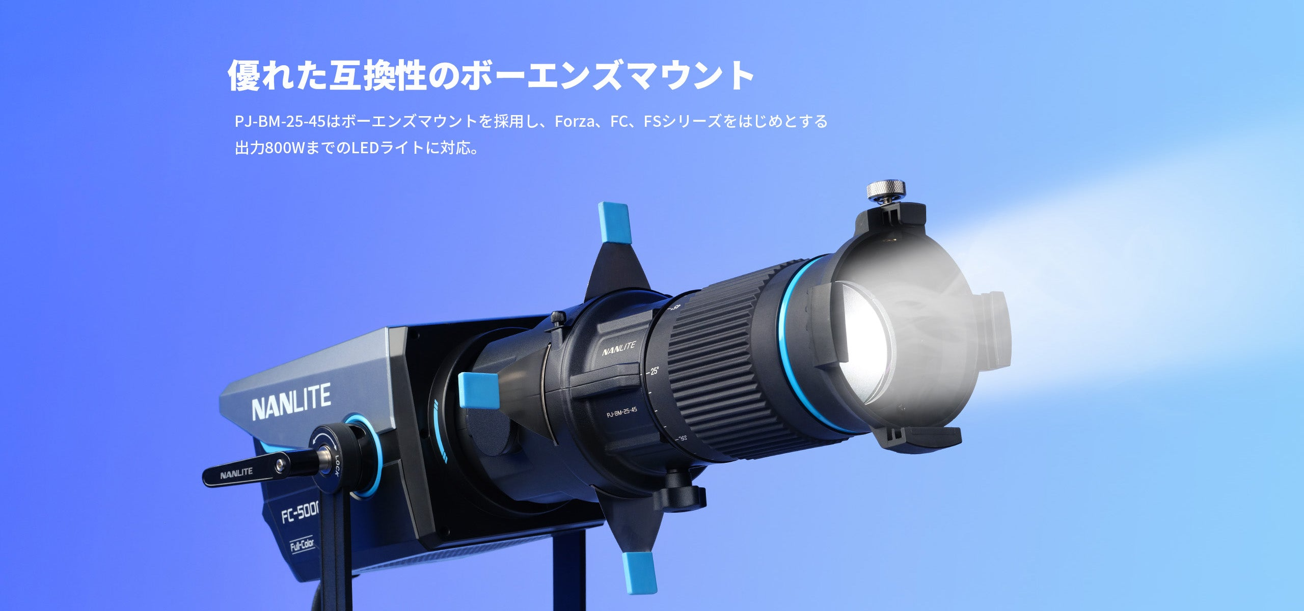 ボーエンズマウントのLEDライト(NANLITE FS-150B、FS-300B、FC-500B、FC-500C、Forza 300BII、Forza 720Bなど)