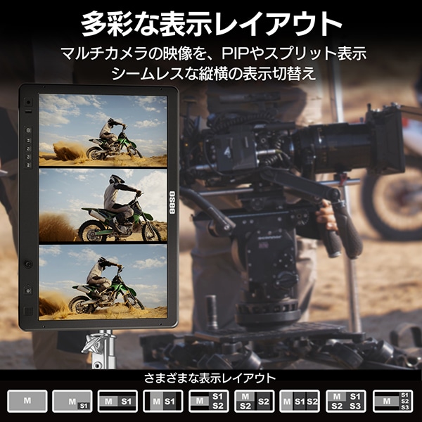 従来の「メガ 22S」の性能を継承しつつインプット系統を増やし、最大4つのソースを同時に出すことで、マルチカメラ撮影での映像チェックを効率化できます。