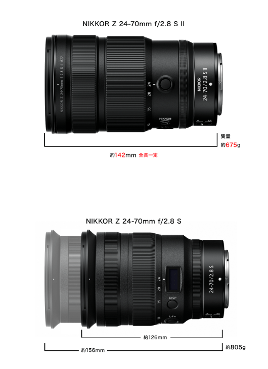 これにより、使用レンズをNIKKOR Z 24-70mm f/2.8 Sよりも減らしつつ、S-Lineレンズ最高クラスの画質を実現しました。同時にレンズ自体の小型軽量化も達成しています。