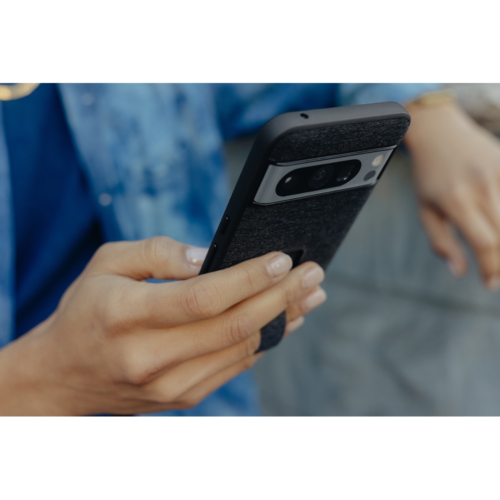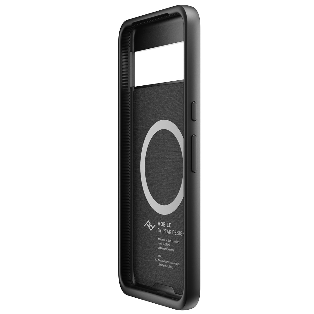 ケース背面にピークデザイン独自の SlimLink™を備え、スマートフォンをさらに便利に活用できるアクセサリー類を取り付けられます。ケース本体は丈夫なポリカーボネート素材で、表面にはシックなナイロンキャンバス生地を採用しています。フレームには TPU 素材を使用し、衝撃吸収にも優れています。