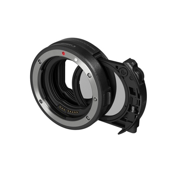 EOS Rシステム専用のマウントアダプター。ドロップインフィルターホルダー機能を搭載したタイプです。円偏光フィルターを同梱し、光の反射に合わせて回転できる調整ダイヤルも備えています。フロントのレンズ面が特殊な形状でもこれ一つで効果が得られます。超望遠、望遠、広角、マクロ、TS-EなどのEFレンズが装着可能です。オートフォーカスや手ブレ補正機構、カメラの電子ダイヤルによる制御、光学補正などレンズの持つ機能をほぼそのまま使用することができます。