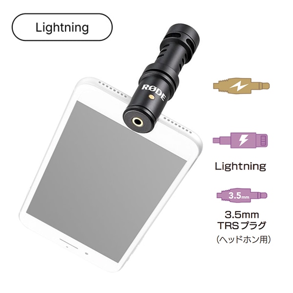 ビデオマイクミーLは、Lightning端子接続の小型マイク。Lightning端子にダイレクトに接続でき、Vlogの収録などに最適です。発売中のVideoMic MEはTRRS接続のスマートフォン用でしたが、iPhone7以降のヘッドフォン/マイク端子がなくなったiPhoneには VideoMic ME-Lがそのまま接続、お使いいただけます。背部には3.5mmヘッドフォン端子を備え、モニタリングが可能です。主な仕様