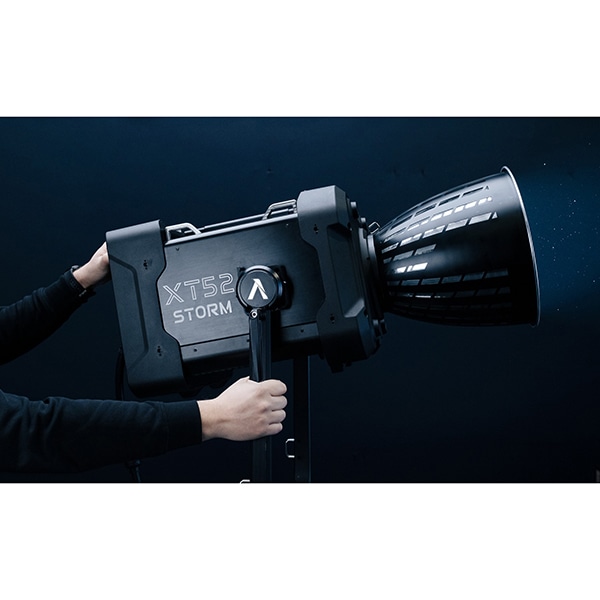 大規模なプロダクション向けに設計されたSTORM XT52は、電子制御のAputureマウントを搭載し、CF16フレネルをはじめとする大口径のレンズ・ソフトボックス系アクセサリーと互換性があります。オート出力キャリブレーションとチップ保護機能により、Aputureマウントアクセサリー使用時でも光の品質を保持・最適化し、LEDチップの過熱を防ぎます。