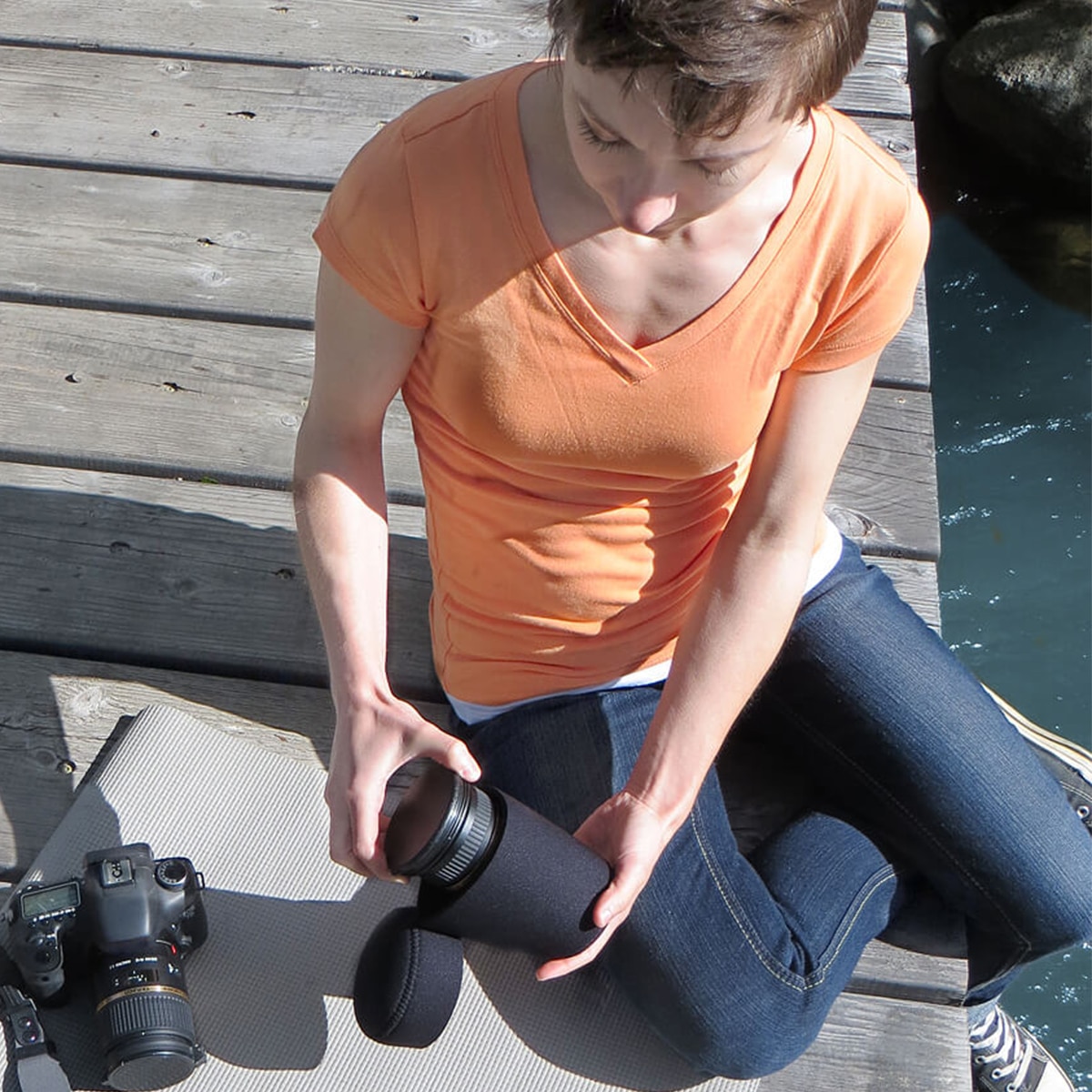 フォールドオーバーポーチは、レンズやマウントアダプター、テレコンバーターなどを保護し、安全に保管できるアイ テムです。 耐久性が強いネオプレン素材を使用しており、機材を埃や水滴、衝撃から守ります。
