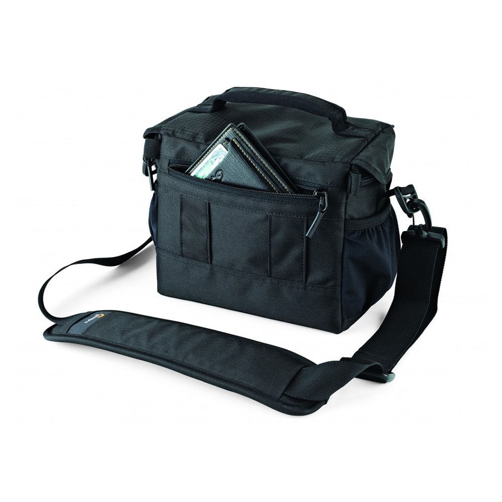 ・保護力のある中仕切パッドや二つのメモリーカードポケット、フロントアクセスポケット、メッシュサイドポケット、パッド付きストラップ