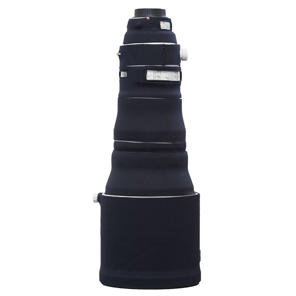 Canon EF400mm F2.8L IS III USM 用の、望遠レンズの鏡筒を傷から守る保護カバーです。使用感を損なわない薄さ約2mm 厚のネオプレン生地を使用し、裏には滑り止め加工が施されており、開きの大きな花形フードにも食い付きが良いのが特長です。オートフォーカス、手ぶれ補正コントロール、距離目盛部分には透明な窓があり、操作が可能です。また、レンズ取り付け指標が見えるように切り込みが入っているため、レンズの交換も容易にできます。迷彩、冬季迷彩などの柄からお選びいただけます。