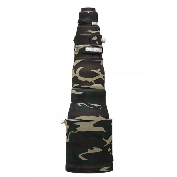 Canon EF600mm F4L IS III USM 用の、望遠レンズの鏡筒を傷から守る保護カバーです。使用感を損なわない薄さ約2mm 厚のネオプレン生地を使用し、裏には滑り止め加工が施されており、開きの大きな花形フードにも食い付きが良いのが特長です。オートフォーカス、手ぶれ補正コントロール、距離目盛部分には透明な窓があり、操作が可能です。また、レンズ取り付け指標が見えるように切り込みが入っているため、レンズの交換も容易にできます。迷彩、冬季迷彩などの柄からお選びいただけます。