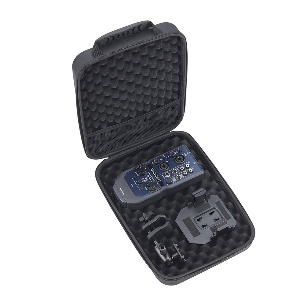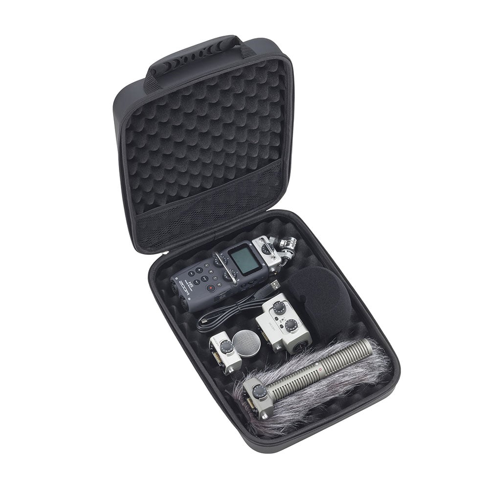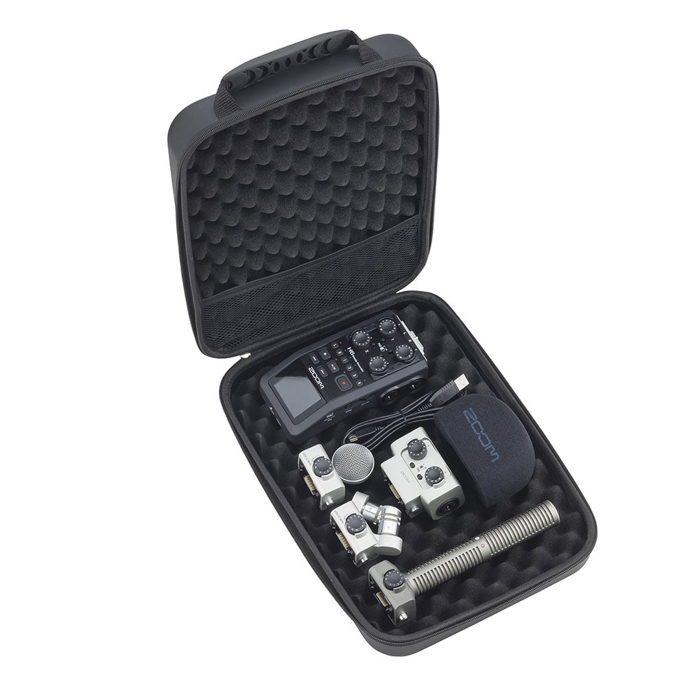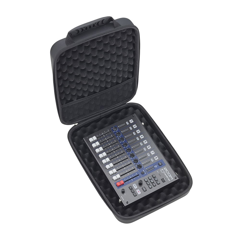 『SCU-40』は、ZOOM製品と必要なアクセサリ一式をまとめて収納できる、大容量の汎用型ソフトシェルケースです。製品本体と一緒に、複数のマイクカプセル、各種マウント用アタッチメント、デスクトップ三脚、ウィンドスクリーン、ACアダプタなどの周辺アクセサリを持ち運ぶことができます。ケース内部の両面に敷き詰められたワッフル状のウレタンフォームにより、運搬時の落下や外部の衝撃から、大切な機材を優しくしっかりと保護します。