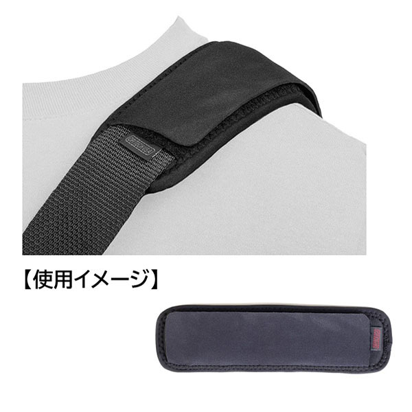 ネオプレンと衝撃を吸収する低反発素材を採用したパッドで、バッグのストラップやカメラストラップに取り付けて、機材や荷物の重みを分散することで肩への負担を軽減します。