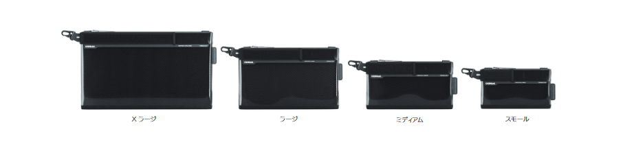 また、ポーチの端にはフックが付いており、バッグやベルトなどに簡単に取り付けできます。スモール、ミディアム、ラージ、Xラージの4サイズ展開。