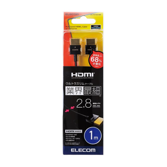 業界最細(※1)のケーブル直径約2.8mmを実現した、ウルトラスリムタイプのHDMI(R)ケーブルです。