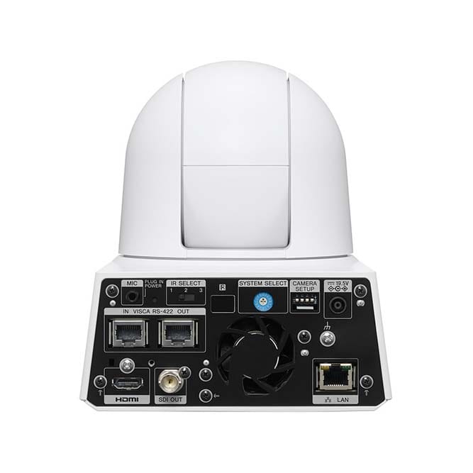外部インターフェース 3G-SDI(BNC)x1*1、HDMI(Type-A)x1、VISCA RS-422(RJ-45) In/Out各1、 LAN(RJ-45)x1、音声入力x1(プラグインパワー)