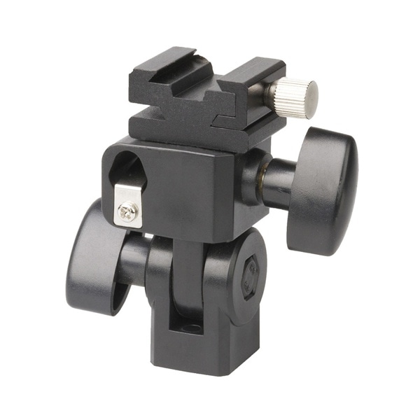 スピードライトホルダー:小型スピードライトをライトスタンドに装着してスピードライトの角度を自由に調整できるホルダーです。
