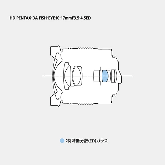 現行の「smc PENTAX-DA FISH-EYE10-17mmF3.5-4.5ED(IF)」をベースに最新の高性能マルチコーティング"HDコーティング"を採用し、さらにレンズコーティング全体を再設計することで、逆光撮影時のゴーストやフレアーの発生を抑え、抜けの良い描写を実現しています。
