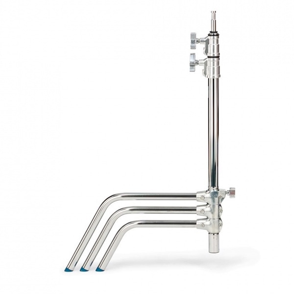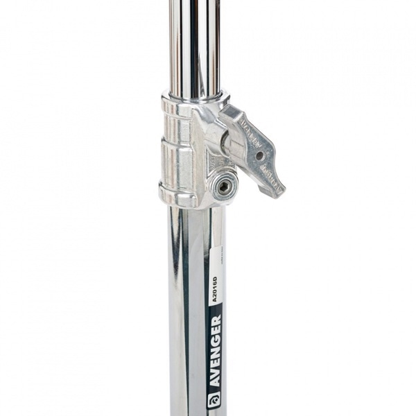 クローム スチール シルバーの Avenger A2016D は、20 インチの 3 セクション、2 ライザーのタートル ベース C スタンドです 。