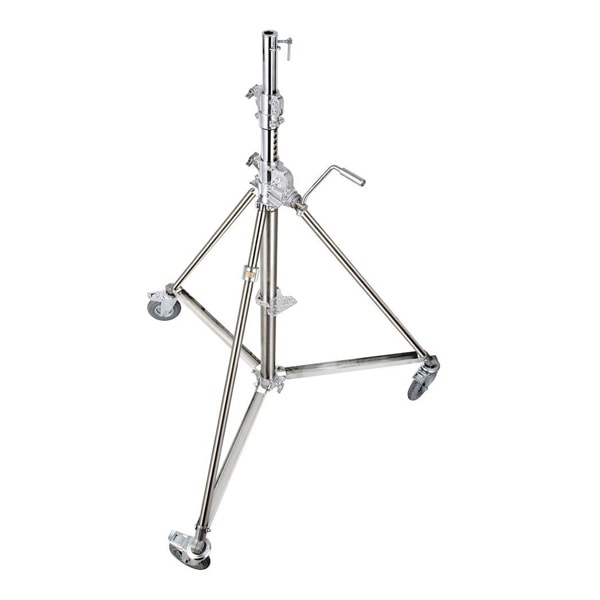 スチール製のクロームスタンドに巻き上げハンドルを備えた3段2ライザースタンドです。 ハンドル1回転ごとに4.4cmポールを巻き上げます。 内部にケーブルを備え、不意の落下を防止します。