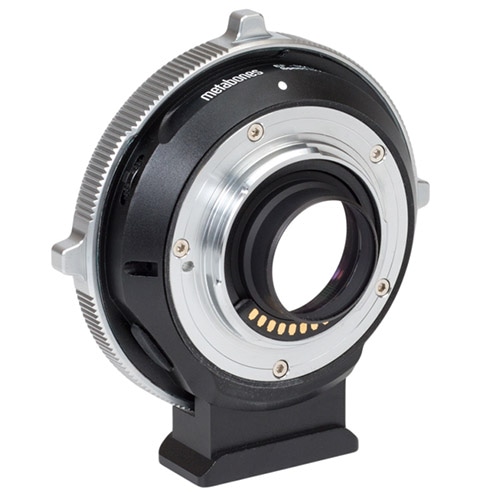 Canon EFマウントレンズをBMPCC4K(BlackMagic Pocket Cinema Camera 4K)に装着するためのアダプターです。電子接点を介してボディでキャノン製EFレンズを制御が可能です。レンズを回転せずに装着できるシネモデルです。