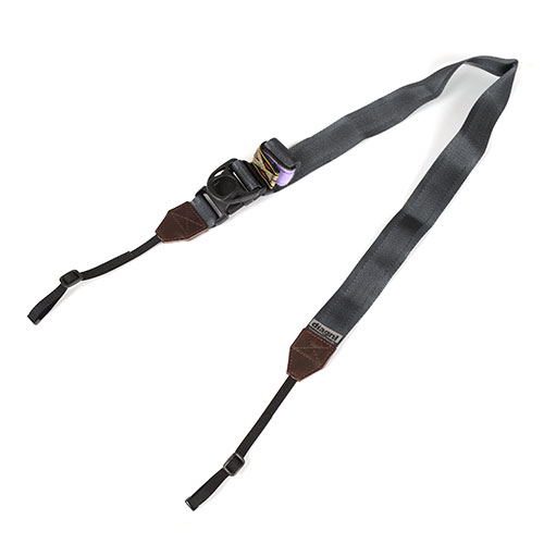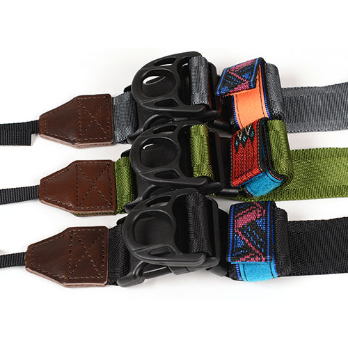 ワンアクションで長さを調節できるニンジャストラップは、これまでのカメラを携帯する考え方を一変してくれます。シートベルト織のテープを使用し、重いカメラでも体に食い込む事がないので、しなやかながら抜群の強度を誇っておりアウトドアシーンにお勧めです。
