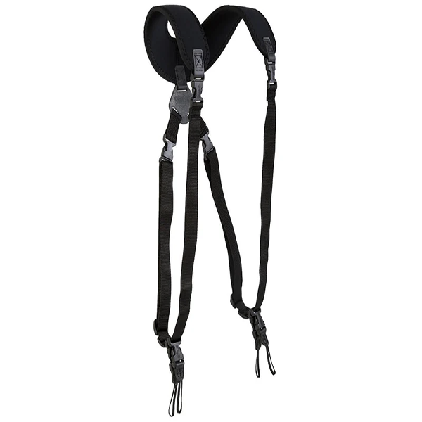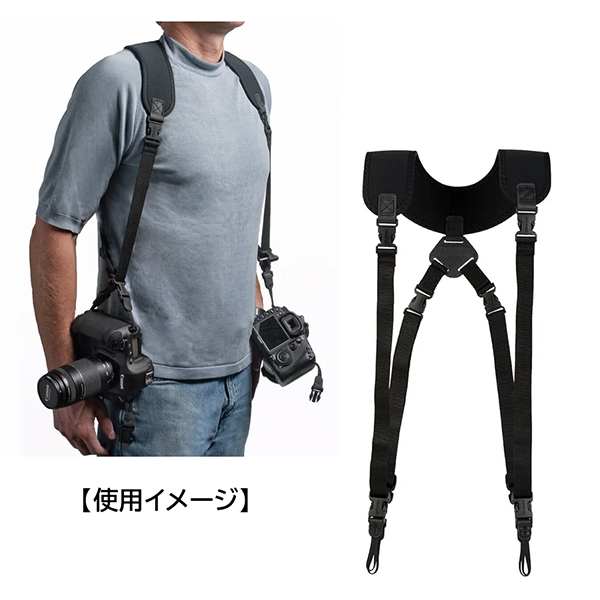 ダブルスリングは、発売後即定番となったユーティリティストラップスリングと同様に、2 台のカメラを保持できるスリングタイプのストラップです。首や肩の負担を分散する独特なネオプレーンの裁断で、快適にカメラを持ち運ぶことができます。システムコネクターユニループを採用。スリングタイプのストラップは速写性の求められる現場でその真価を発揮します。