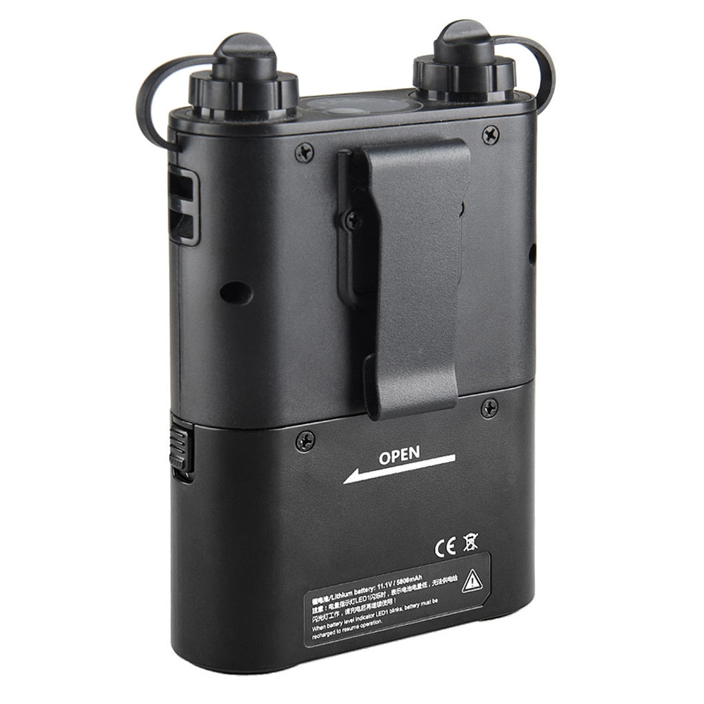 外部電源端子を持つスピードライトに接続してフル発光時でも約1秒の高速チャージを可能にする外部電源パックです。「PB960」のバッテリー部を新タイプのBT5800に変更したもので、容量がアップしキヤノン600RT/ニコンSB-900に使用した場合、約2,700回の発光が可能です。PB960上部だけでなく、バッテリーBT5800の単体でもLED残量表示をもちバッテリー残量の確認が可能です。またBT5800はUSB出力もあり、スマートフォン等のUSB機器への充電も可能です。