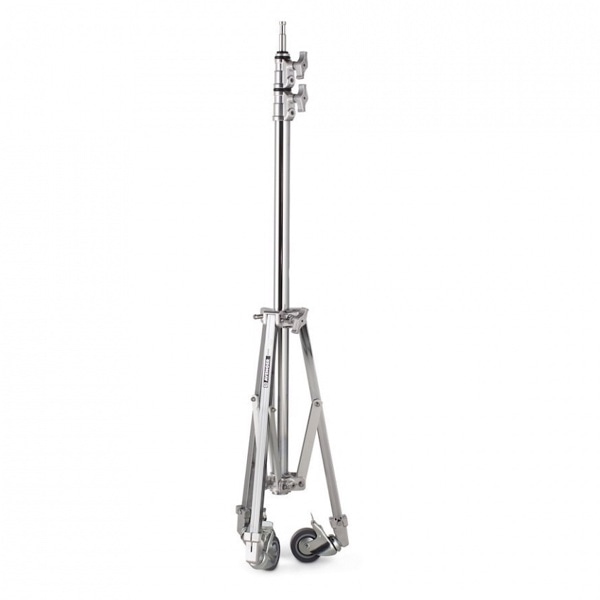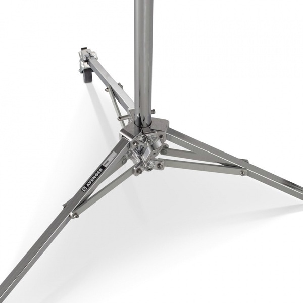 アベンジャーローラースタンドは、スチール製の脚とコラム、そしてアルミニウム製ライザーを備えた3段2ライザー構成のスタンドです。最大12kgの機材を保持することができ、2.90mの高さまで伸ばすことが可能です。ホイールを装備しているため、移動しやすく、また、ベースが低いため、安定性に優れています。