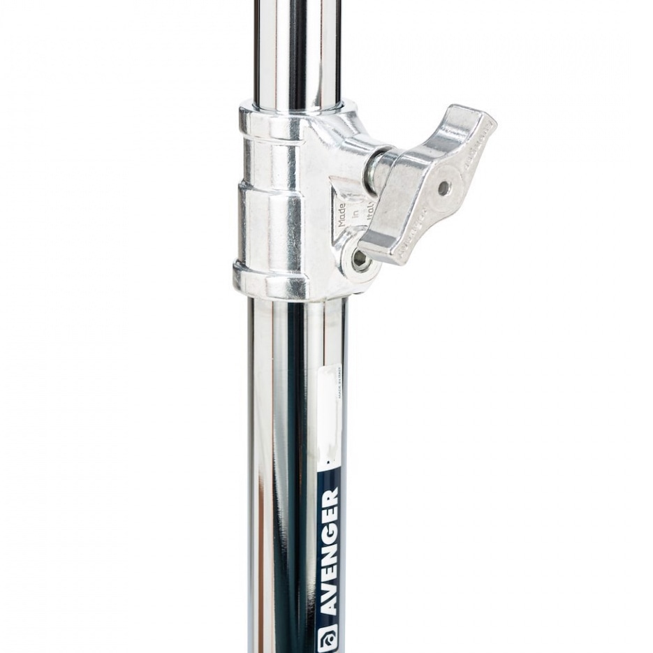 3段2ライザー構成のクロームメッキスチール製タートルベーススタンドです。不整地でも使用できるよう、スライド脚を1本備えています。最大8kgの機材を保持することができ、1.75mの高さまで伸ばすことが可能です。