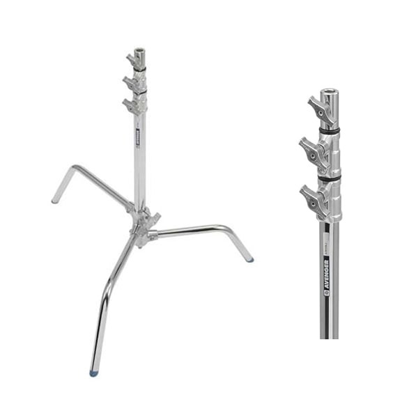 3段2ライザー構成のクロームメッキスチール製タートルベーススタンドです。不整地でも使用できるよう、スライド脚を1本備えています。最大8kgの機材を保持することができ、1.75mの高さまで伸ばすことが可能です。