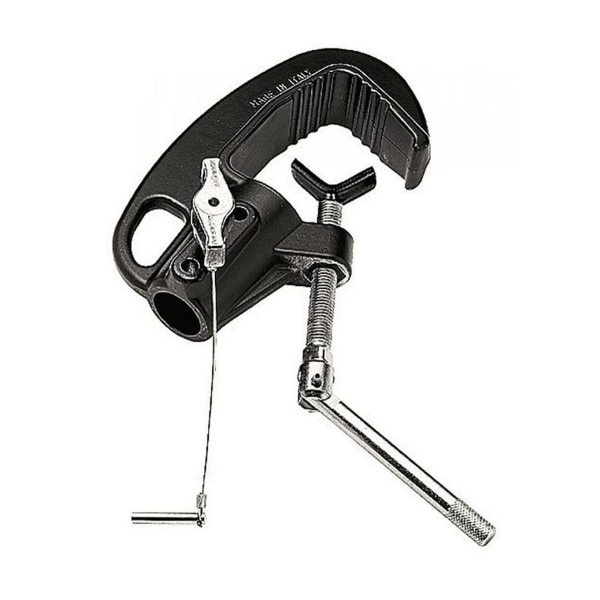 このジュニアパイプクランプは直径20~55mmに対応し、また、28mmソケットと最大250kgの機材を保持することが可能なケーブルロックを備えています。このアクセサリーは重力鋳造アルミニウム製で非常に頑丈で耐久性に優れ、大型ライトを保持するのに最適です。ロックを容易にするハンドルと安全ケーブルロックを備えています。製品のスペック
