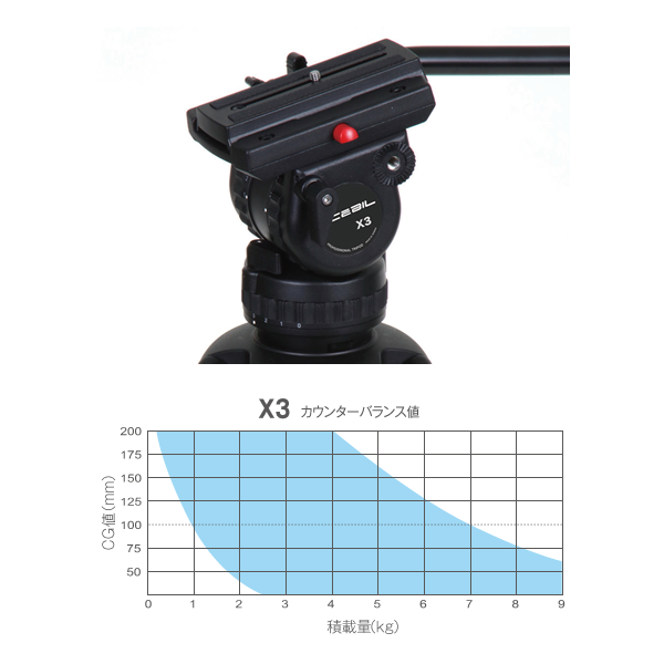 X3 ビデオヘッドは9kgまでのカメラシステムに最適です。