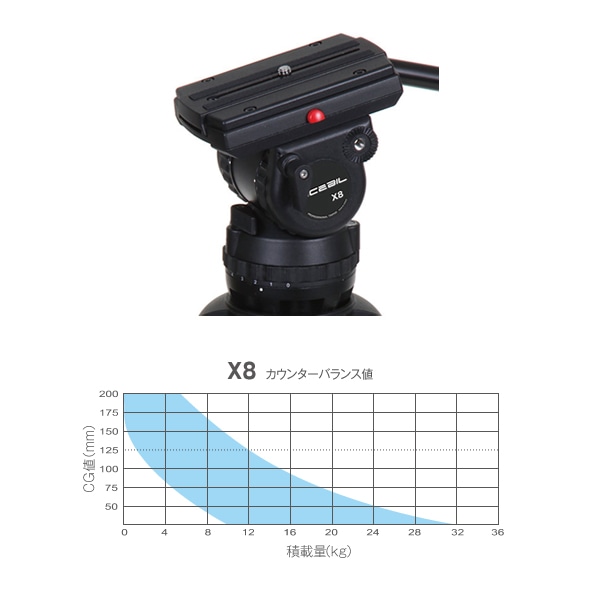 X8 ビデオヘッドは小型カムコーダーカメラから12Kgまでのデジタルシネマシステムに対応します。