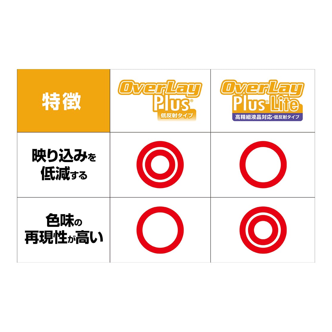 OverLay Plus(オーバーレイ プラス)」は、屋外でアクティブに使用するユーザーのために開発された液晶保護シートです。シート表面にアンチグレア(低反射)処理を加えることによって、蛍光灯や太陽光の画面への映り込みを軽減し、屋外の使用でも画面を見やすくします。加えて高精細液晶に対応しにじみを抑えることが出来る保護フィルムです。