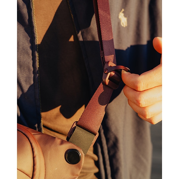 独自構造によりワンアクションで長さを調節可能なストラップ、キャプチャー(別売)を取り付けられる側面のスリットなど、細部まで使いやすさにこだわったエブリデイスリング 10L。