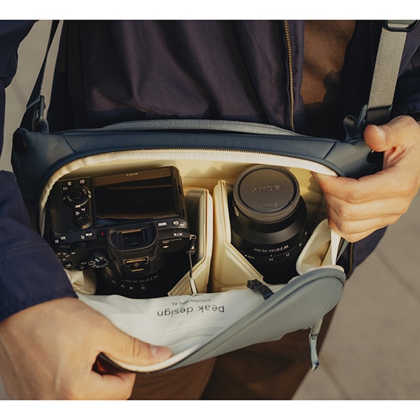 ミラーレスカメラやコンパクトカメラはもちろん、小型一眼レフを1台持ち運べるタウンユースに最適なエブリデイスリング 6L。