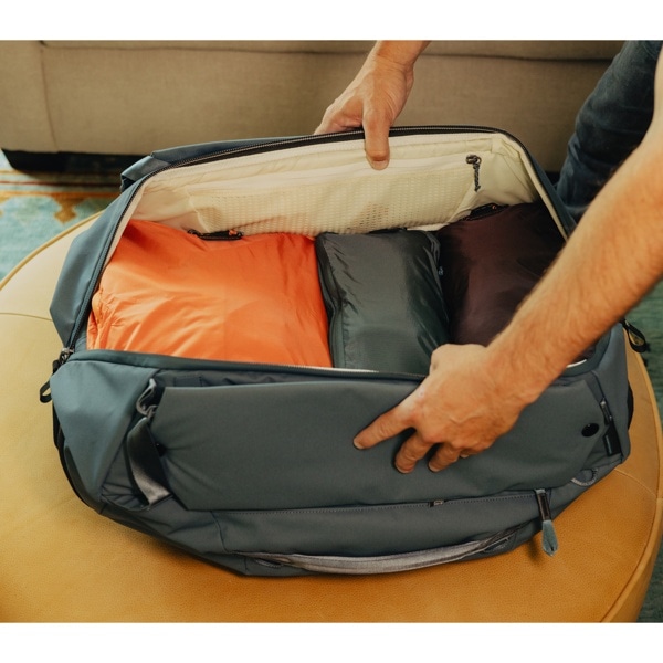 多くの荷物をより快適に持ち運べるトラベルダッフルパック。