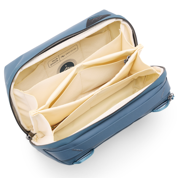 日本の折り紙に着想を得たポケットデザインで、ケーブルや SD カード、バッテリーに充電器など、さまざまな小物類を効率よく整理して収納できます。