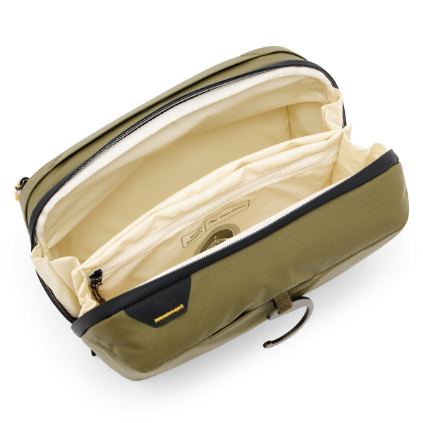 内側にジッパーポケットとマグネットで閉じる歯ブラシポケットを備え、細かなアイテムを整理して清潔に保つことができます。