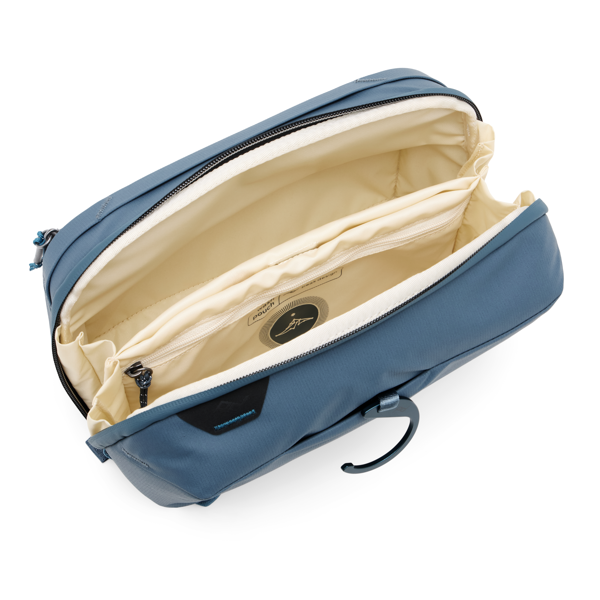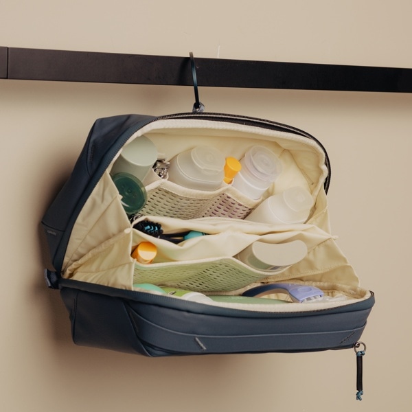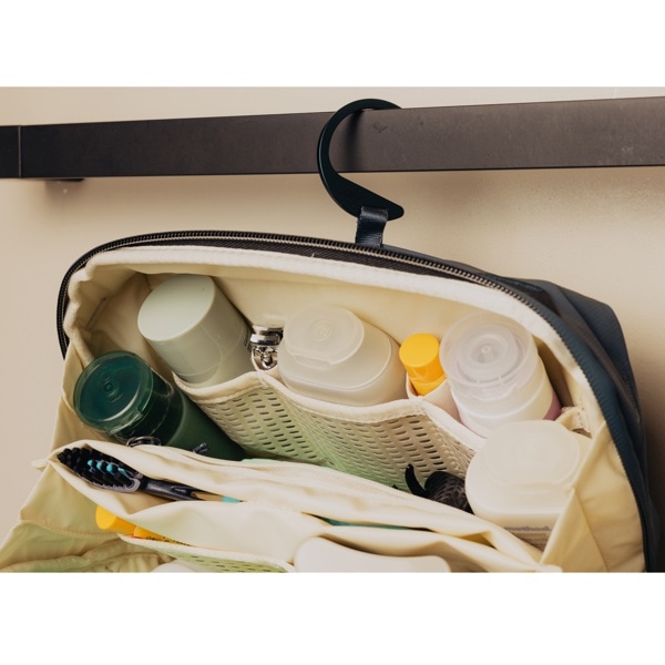 内側にジッパーポケットとマグネットで閉じる歯ブラシポケットを備え、細かなアイテムを整理して清潔に保つことができます。