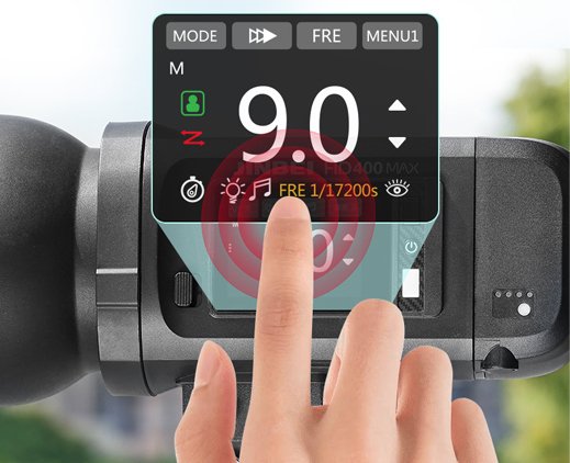 HD-400MAXは、最大400Wsの安定した出力でプロフェッショナルな撮影においても信頼性の高い光と、スムーズな設定を実現する高性能バッテリー駆動ストロボです。リサイクリングタイムが0.01~0.9sと高速で、秒間60コマの高速連写もサポートします。別売のワイヤレストリガーTR-Q8/TRーQ7II/TR-Q6IIを使用すれば、各社主要カメラのTTL(オート)やHSS(ハイスピードシンクロ)にも対応し、HSS時はシャッタースピード1/8000sまで対応します。また、高速閃光を行うFreezeモードでは、最速1/24000s(t:0.5)の世界を表現します。タッチパネルディスプレイを採用