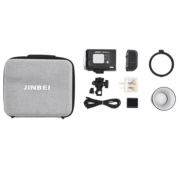 HD-250MAX本体、バッテリーパック、発光ユニット、リフレクター、フィルタークリップ、クイックブラケット、充電アダプター、USBケーブル、カラーフィルター6枚というセット内容一式をすっきりと収納することができる専用ケースが付属しています。【仕様】