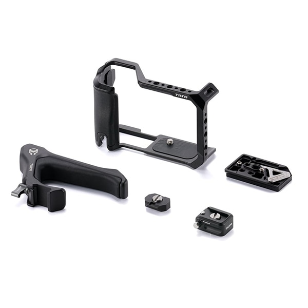 キヤノン EOS R50 V用カメラケージ ベーシックキットには、フルカメラケージとトップハンドルが含まれます。わずか約100gと軽量で、コンパクトかつ持ち運びやすいフルケージ。軽快な操作感を損なうことなく、機動力を発揮します。