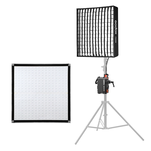 サイズ別にF100R、F200R、F200SR、F400R、F800Rをラインアップ(サイズ詳細は仕様欄参照)。各サイズともに、対応のグリッド付ソフトボックス(FS100/200/200S/400/800)が付属した「ソフトボックスキット」となっています。IP54の防塵防水性能を備えており、雨天の屋外撮影でもお使いいただけます。また、コントローラーも同様にIP54の性能となっています。Vマウントバッテリー駆動に対応しており、場所を選ぶことなくご使用いただけます。