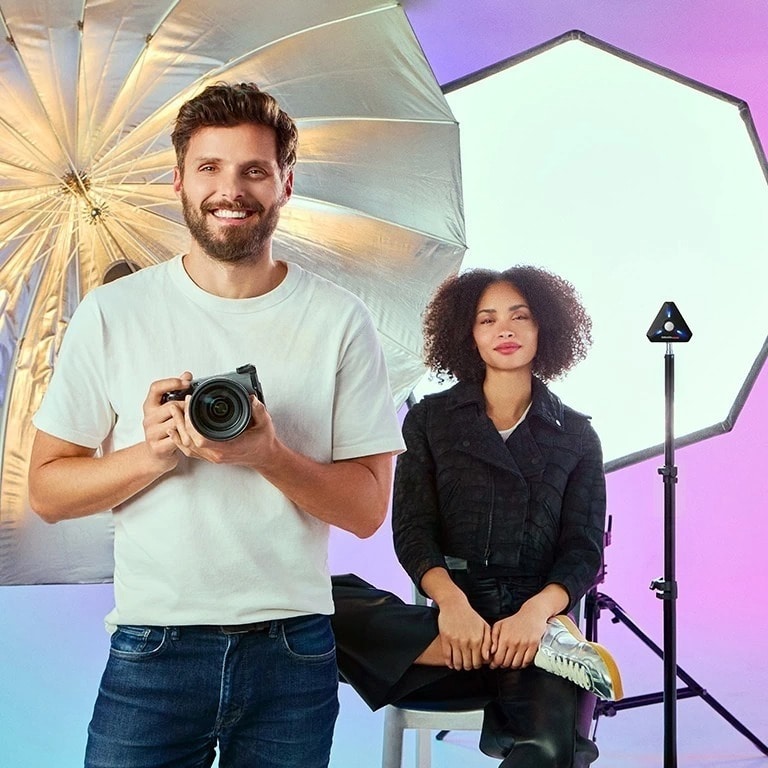 プロ品質の照明と正確な色表現でインタビュー映像を作成し、被写体の外観とビデオの全体的な美観を向上させます。LightColor Meterのワイヤレス機能により、撮影に最適な3点照明をすばやく簡単に設定できます。
