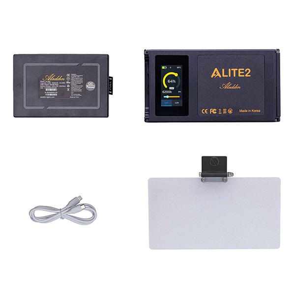 電源周りには着脱式バッテリーを採用しており、USB-C(PD)を通じてバッテリー単体または本体装着状態での充電が可能です。USB-C給電による連続点灯にも対応しており、バッテリー1個でのフル充電時には約2時間の動作が可能です。製品ラインアップにはバッテリー1個付属の「ALITE 2 キット」と、2個付属の「ALITE 2 スペアバッテリーキット」が用意されています。