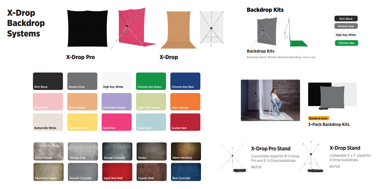 X-Drop ProおよびX-Dropは、汎用性の高い高品質撮影用バックドロップシステムです。