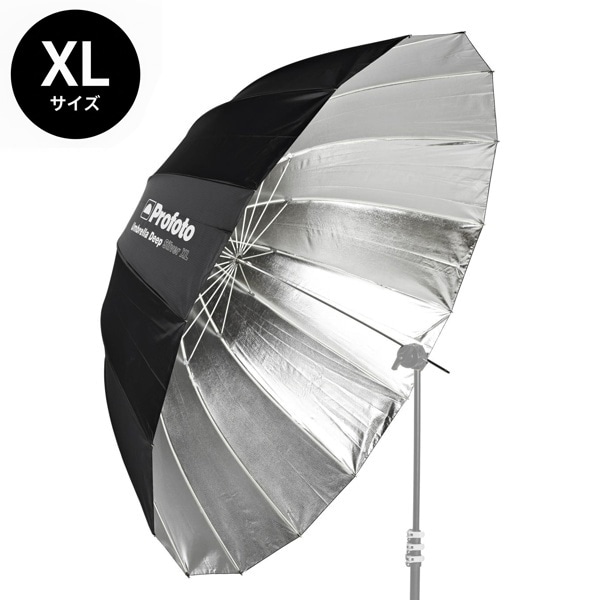 Profotoのアンブレラ ディープは、一般的なアンブレラと比較して奥行きが深いパラボリックな形状になっています。